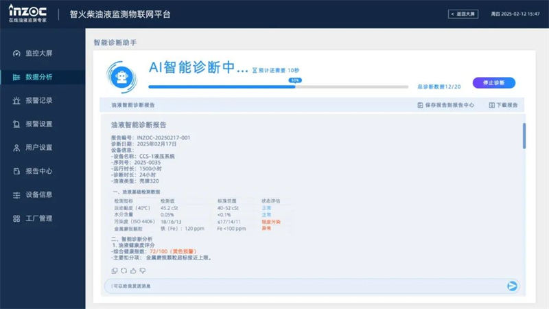 同時(shí)也標(biāo)志著油液監(jiān)測(cè)行業(yè)迎來了首個(gè)AI診斷大模型的時(shí)代。想要率先體驗(yàn)AI智能診斷功能,敬請(qǐng)關(guān)注我們的官方微信公眾號(hào),即可及時(shí)解鎖更多油液云平臺(tái)功能!